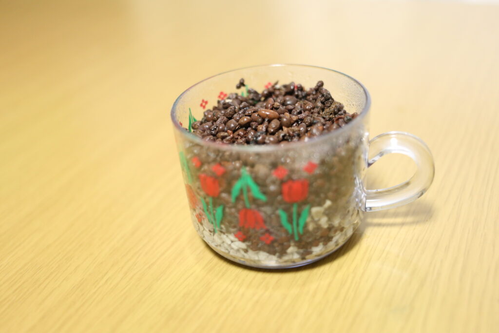 みんなでレモンを育て始める前にどうやったら芽が出るのか調べたところ、濡れたキッチンペーパーにくるんでから2週間くらいで発芽するとのこと。
